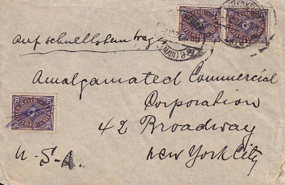Foreign cover (1-20 g) from 04.12.1922 franked with 4 stamps a 10 Mark (=40 Mark)