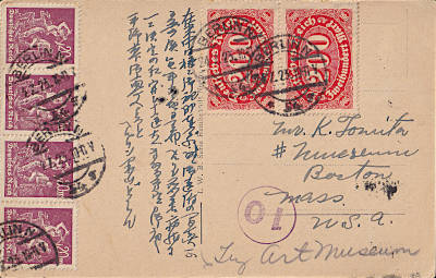 Foreign postcard from 24.07.1923 franked with 6 stamps (=480 Mark)