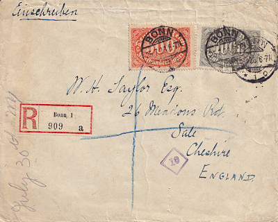 Foreign cover with registeration (21-40 g) from 25.07.1923 franked with 2 stamps