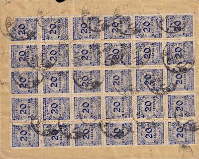 Inlandsbrief (1-20 g) from 11.11.1923 franked with 50 stamps a 20 Million Mark (=1 Billion Mark) |