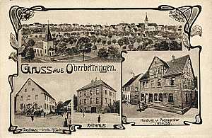 Oberbettringen Teilansicht, Rathaus und Gasthaus zum Hirsch 1905 |