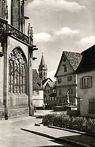 Blick auf die Johanniskirche mit Chor (links) 1959 |