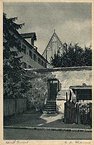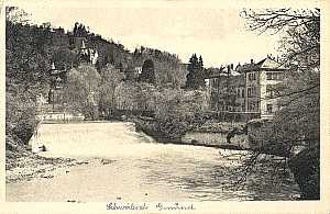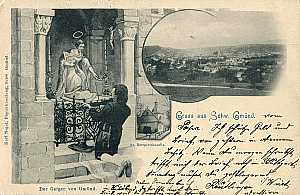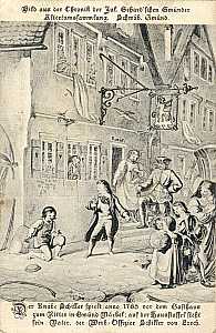 Der Knabe Schiller anno 1765 vor dem Gasthaus zum Ritter in Gmünd beim Murmelspiel 1905 |