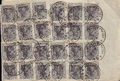 Auslandsbrief (21-40 g) vom 20.10.1923 (21. Periode) frankiert mit 18 Marken (=45 Millionen Mark) |