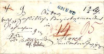 blauer Einzeiler "GMÜND" (29 Millimeter) (1850 - 1852) |