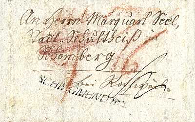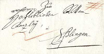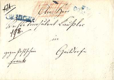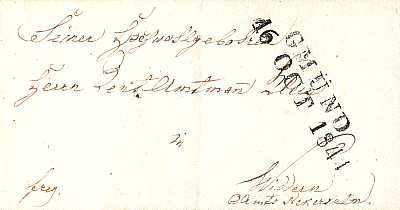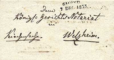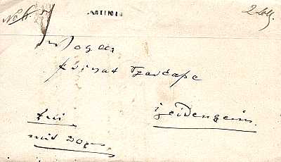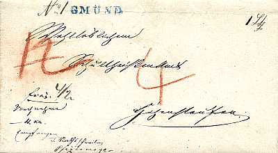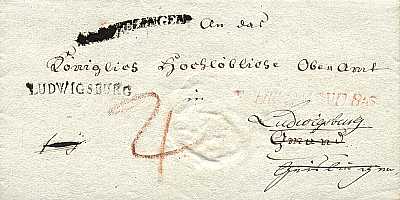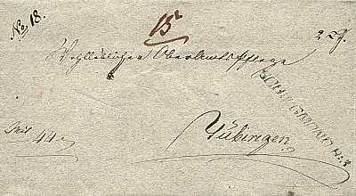 Wertbrief vom 09.03.1835 über 44 Kreuzer nach Tübingen; dieser Stempel wurde bei der Fahrpost weiter verwendet |