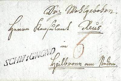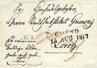 Brief vom 14.08.1817 nach Lorch mit kopfstehenden Ziffern |
