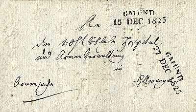 schwarzer Zweizeiler "GMÜND/(Datum)" (23 Millimeter) (1815 - 1837) |