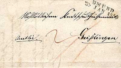 schwarzer Zweizeiler "GMÜND/(Datum)" (29 Millimeter) (1838 - 1857) |
