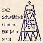 "1962/ Schwäbisch/ Gmünd/ 800 Jahre/ Stadt/ (Barbarossa)"; Einkreisstempel mit Stegsegment oben (bo3z) "SCHWÄBISCH GMÜND 1/ mc/ (Datum)/ 707"