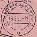 Zweikreisstegstempel (bozbu) "SCHWÄBISCH GMÜND 2/ i/ (Datum)/ 707"