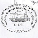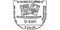 Ellipsenstempel mit 2 Striche (2bo4zbu) "SCHWÄBISCH GMÜND/ 125 Jahre BSV Gamundia/ Südwest 2011/