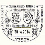 Ellipsenstempel mit 5 Striche (2bo2zbu) "SCHWÄBISCH GMÜND /Landes- gartenschau/ BSV Gamundia/ (Datum)