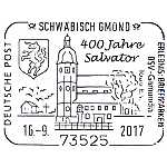 Rechteckstempel mit 2 Striche (5z) "DEUTSCHE POST SCHWÄBISCH GMÜND ERLEBNIS BRIEFMARKEN/ 400 Jahre BSV-Gamundia/