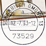 Einkreisstempel mit Stegsegment oben (bo3z) "SCHWÄBISCH GMÜND 13/ a/ (Datum)/ 73529"