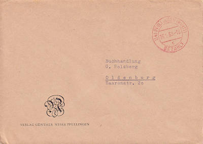 Pfullingen: Inlandsdrucksache (1-20 g) vom 27.02.1960 mit rotem Zweikreisstegstempel (bo2zbu) "(14) PFULLINGEN (WÜRTT)/ (Datum)/ c/ Bezahlt" |