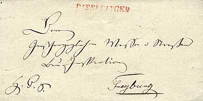 roter Einzeiler "R1 EMEDINGEN" auf Brief vom 10.07.1828 nach Freyburg