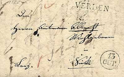 schwarzer Einzeiler "VERDEN" auf Brief vom 13.10.1820 nach Siecke