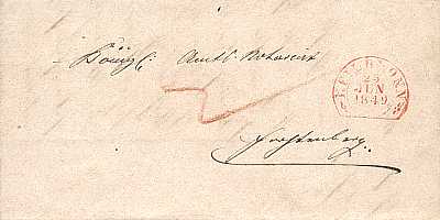 roter Kreissegmentstempel mit Kreis "HEILBRONN/ 23 JUN 1849" auf Brief nach Forchtenberg |
