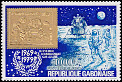 Astronauts and lunar module on the moon