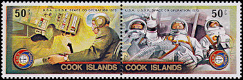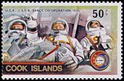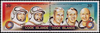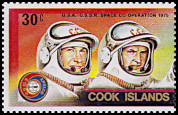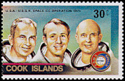 Crew of Soyuz 19: Alexei Leonow and Valeriy Kubasov, mission patch of Apollo-Soyuz |