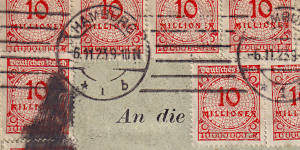 Two Cancellation Kinds: postage stamp that was cancelled with two types of cancellations