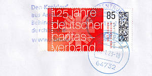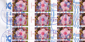 Hand Stamp And Inkjet Cancellation: postage stamp that was cancelled with a hand stamp and inkjet cancellation