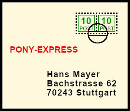 Supplemented Address: original postal shipment with original postage stamps and hand postmark with deceitful bogus address |