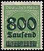 Briefmarken in unterschiedlichen Farben mit schwarzem Aufdruck "250 Tausend" oder "800 Tausend" |