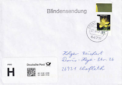 Partly Franking Colour Parallel Issue: postal shipment franked with the same postage stamp in partly different colours |