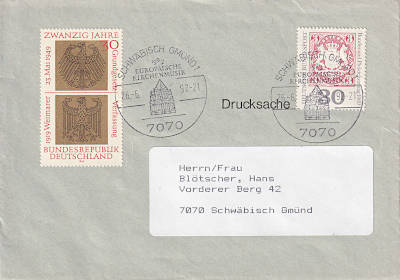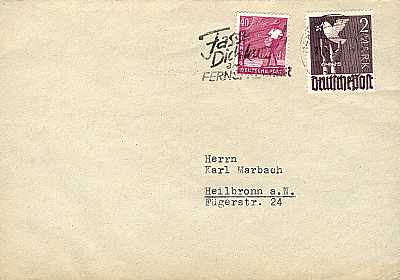Ten-Times-Value Franking: postal ship-ment from Germany in which the postage stamps were used at one tenth of its face value (e. g. cover 24 Pfennig) |