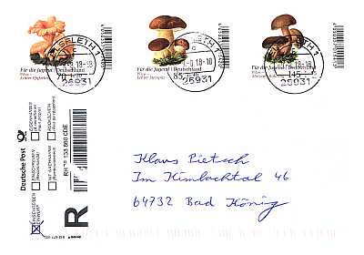 Imbricate Franking: postal shipment franked with overlapping postage stamps e. g. in times of inflation to use up postage stamp with a low face value |