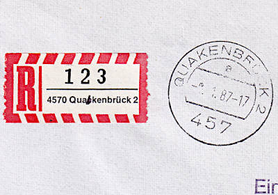 Postal Marking Text Error: philatelic term for a deviation in the postal marking text caused by error (e.g. town name "Quackenbrück" instead of Quakenbrück)