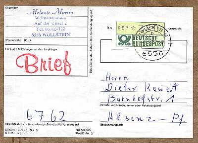 Postal Marking Postcard: marking indi-cating a basic postal shipment for sending short messages |