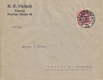 01.08.1923 - 23.08.1923: Inland cover (1-20 g) franked with 1 000 Mark