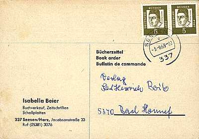 Book Order: fee reduced basic postal ship-ment for ordering books and other printed matter |