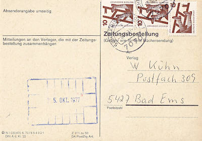 Official Shipment From A Communal Authority: mostly free of charge postal shipment from a communal authority on official matters |