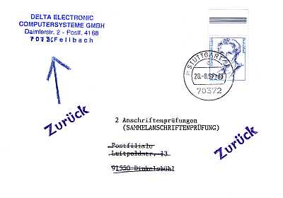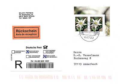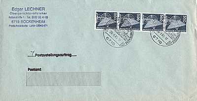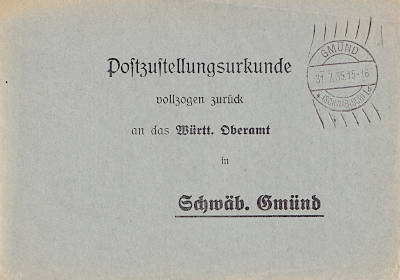 Affidavit Of Service: special service where a form is enclosed with a postal item on which the deliverer documents the formal delivery and then sends it back to the sender (additional service in Germany until July 31, 1964) |
