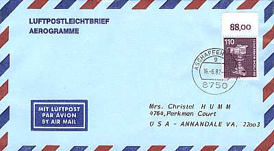 Aerogramme: special service for a foreign letter with airmail consisting of an envelope or folded letter made of thin paper that weighs no more than 5 grams |