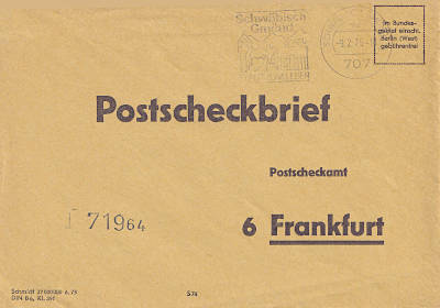 Postal Check Letter: mostly free of charge postal shipment for the purpose of submit-ting orders from an account holder to his postal check office |