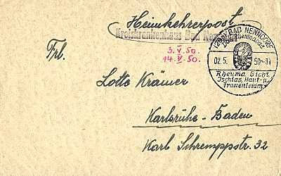 Homecoming Shipment: free of charge postal shipment for returning soldiers who have not yet been able to be released due to their wounds or illness |
