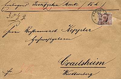 Value Declared: special service in which the sender´s delivery is certified and the recipient must confirm receipt of the postal shipment with a signature. In the event of loss, the post is liable for the actual amount up to the stated value (additional service in Germany from October 1st, 1919) |
