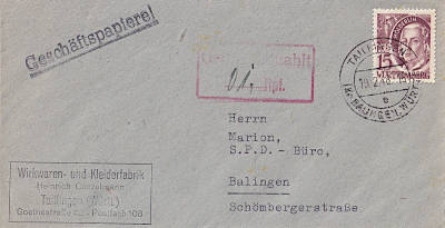 Pneumatic Mail: special service in which the transport takes place in a can through pipelines using compressed or suction air (additional service in Germany from August 1st, 1927) |