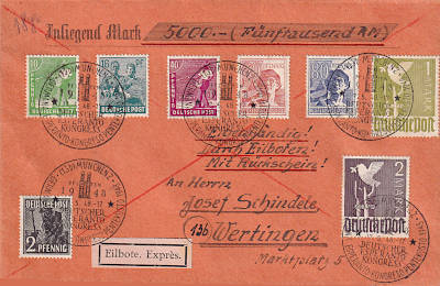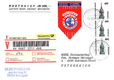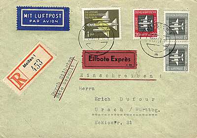 Cover with value, special delivery and airmail |