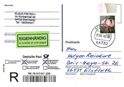 Postcard with registeration and personal delivery |