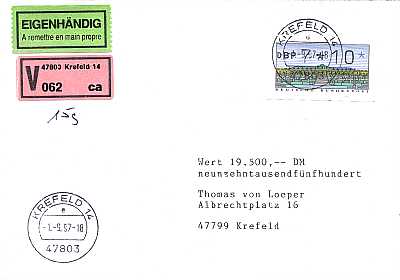 Cover with value, personal delivery, special delivery and advice of delivery |