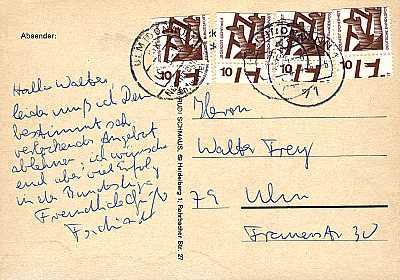 Representative Card: announcement of a visit by a company representative on a pre-printed postcard |
