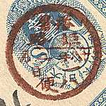 Bicolour Postmark: postage stamp with postmark in two colours using a split two-colour ink pad as intended style