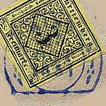 Monochrome Postmark: postage stamp with postmark in one colour as intended style