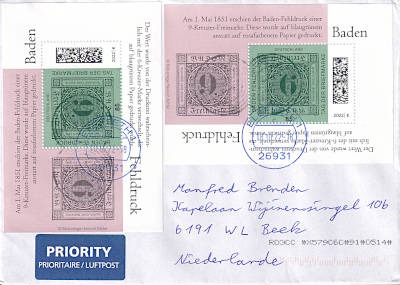 Auslandsbrief (21-50 g) vom 18.10.2022 (11. Periode) frankiert mit 2 Blocks a 85 Cent (=1,70 €) |